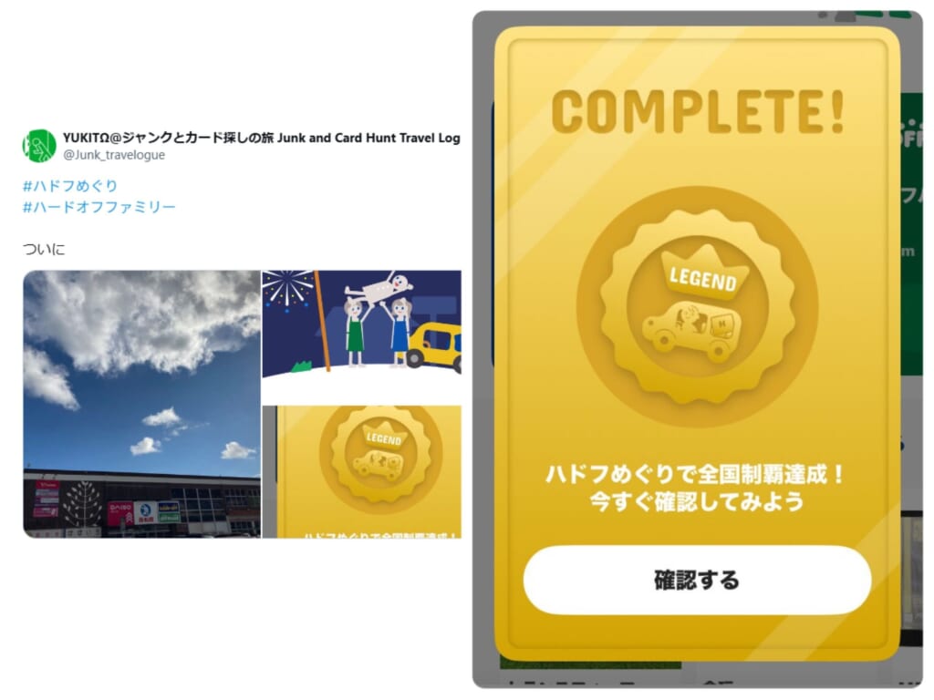 全国の個性豊かな店舗をめぐって掘り出し物を探す、ハードオフグループのとっておきの楽しみ方です。ハードオフ公式アプリ内の「ハドフめぐり」機能を使用し、来店時にチェックインをするとめぐった店舗数が記録されます。